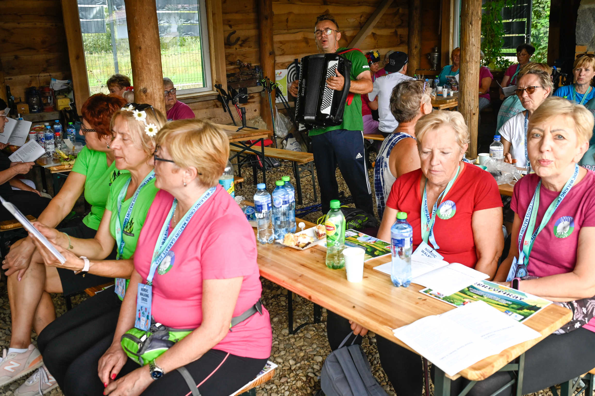 Kulminacyjnym punktem wieczoru było wspólne ognisko. Zapach pieczonych kiełbasek mieszał się z radosnymi dźwiękami mazurskich i biesiadnych pieśni, śpiewanych w akompaniamencie akordeonu. To właśnie wtedy, przy blasku ognia i wspólnym śpiewie, uczestnicy poczuli prawdziwą integrację i radość bycia razem.